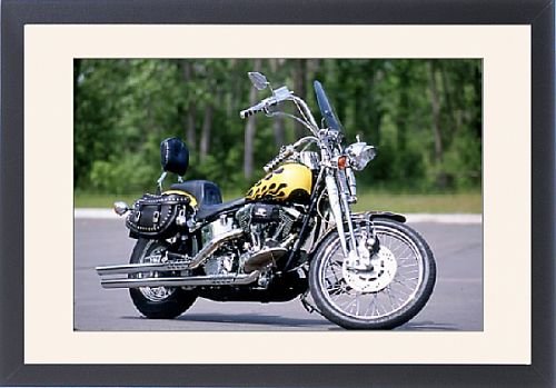 30 x20 Framed Print, Black Satin Frame Off-White Digital Mat. showing Harley Davidson Softail. bike, Harley, Davidson, Softail, Springer, Custom, US, USA, America, American, United, States, yellow, black, current, contemporary, cruiser, bike, motorbike,. Chosen by Car Photo Library. 30 x20 wooden frame with digital mat and RA4 print. Finished back including brown backing paper, hanging bracket and corner bumpers. This item is shipped from